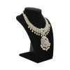 This opulent necklace features a stunning diamond finish with brilliant cubic zirconia (CZ) stones, accented with semi-precious ruby and emerald stones. Crafted in high-quality 925 sterling silver with a luxurious 22-carat gold plating and finished with elegant pearl drops, this set radiates traditional elegance and is perfect for bridal wear or grand festive occasions.
