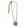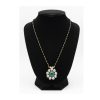 A stunning, traditional black beads necklace crafted from 925 sterling silver with a luxurious 22-carat gold plating. The focal point is a beautiful floral-motif pendant featuring a large central green emerald stone, surrounded by shining moissanite polki stones. This elegant piece is ideal for weddings, festive occasions, or as a sophisticated daily-wear statement.