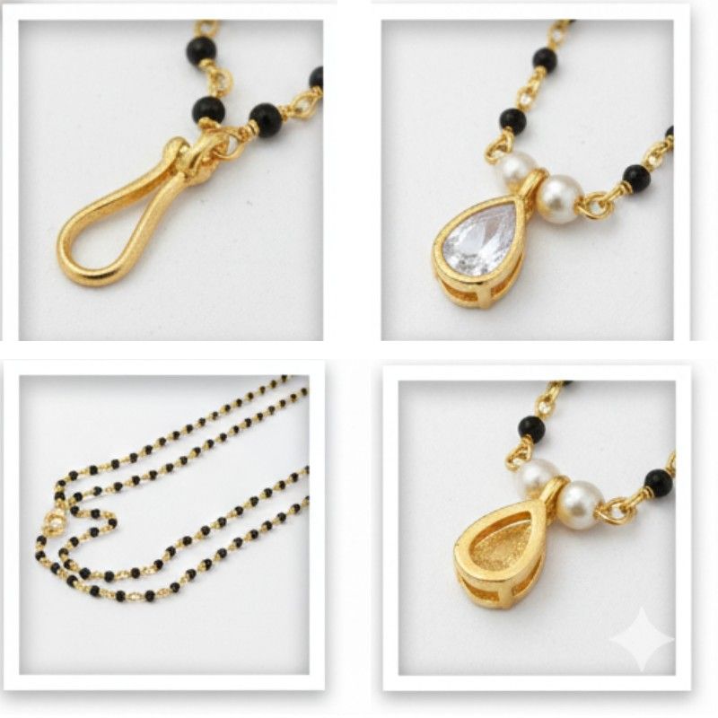 - Beads: Features a fine, single strand of glossy black crystal or glass beads, offering a classic contrast to the gold finish.