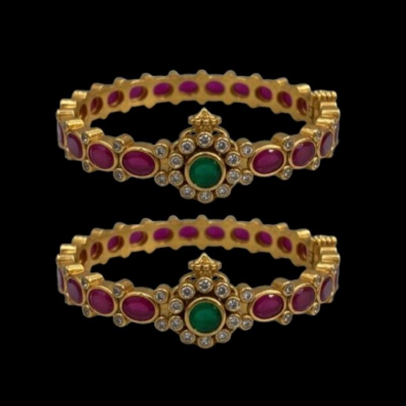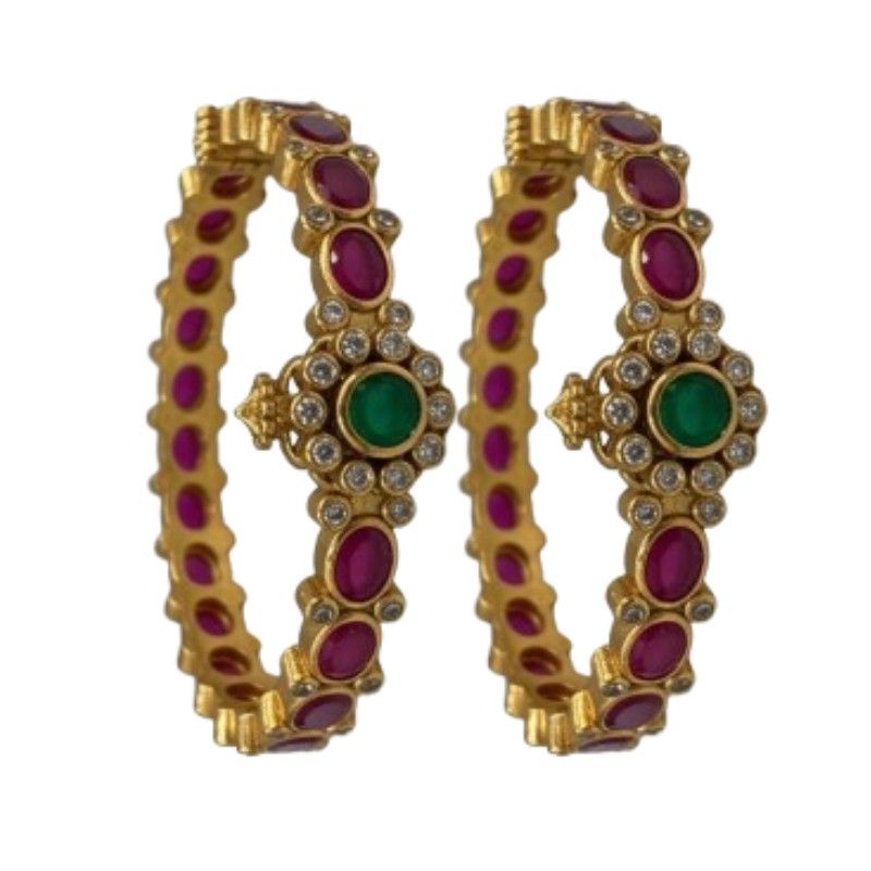 Elevate your jewelry collection with this exquisite open-style kada bangle. Meticulously crafted from high-quality 925 sterling silver and plated in luxurious 22-carat gold, this piece offers a sophisticated look and lasting appeal. The kada features a brilliant diamond finish, embellished with dazzling cubic zirconia stones, vibrant semi-precious emeralds, and rich rubies. The open style ensures a comfortable fit for various wrist sizes and makes it easy to wear. This statement piece is perfect for festive occasions, weddings, or adding a touch of glamour to any ensemble.