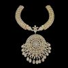 An opulent 22-carat gold-plated necklace crafted in 92.5 sterling silver, featuring a stunning array of moissanite and cubic zirconia (CZ) stones. The heavy collar necklace includes a large, intricate pendant that is detachable, offering versatile styling options.