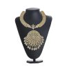 Elevate your collection with this magnificent statement necklace. Crafted from certified 925 sterling silver and luxuriously plated with 22ct gold, this piece combines traditional grandeur with modern versatility. It is heavily embellished with high-quality, brilliant-cut moissanite stones and sparkling cubic zirconia stones for a dazzling ‘diamond finish’. The centerpiece is a large, elaborate mandala-style pendant that can be easily detached, allowing the collar piece to be worn alone. This set is perfect for grand celebrations, weddings, or formal events, promising elegance and style.