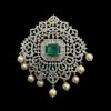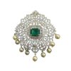 Exquisite openwork pendant crafted from 925 silver, featuring a lavish 22-carat gold plating and a brilliant diamond finish. Adorned with dazzling cubic zirconia stones and a captivating semi-precious emerald centerpiece.