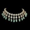An opulent, short Victorian-style necklace set crafted from 92.5 sterling silver and plated with 22ct gold. It features sparkling cubic zirconia, brilliant moissanite stones, delicate pearls, real emerald beads, and screw-back earrings for a secure fit.