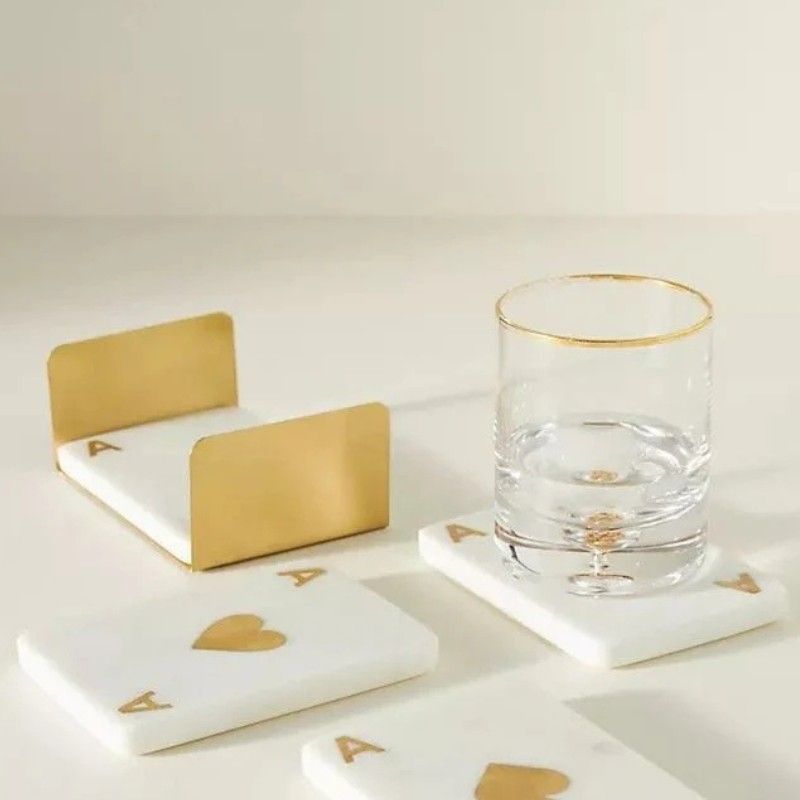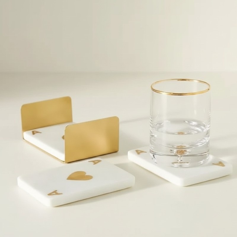 - Stylish Design: Each coaster has a smooth finish and features a unique playing card ace symbol (hearts, diamonds, clubs, spades), adding a sophisticated, playful touch to any decor.