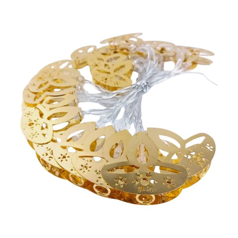 Bring a warm, traditional glow to your festive celebrations with this Golden Metal Diya Light – 3 Meter. Designed with intricately crafted metal diyas in a rich golden finish, this beautiful string light adds an ethnic charm to any space. Ideal for Diwali, Navratri, weddings, pooja decor, or home ambience, it blends the elegance of traditional design with the convenience of modern LED lighting. Perfect for indoor decoration, this 3-meter long garland is easy to hang on walls, balconies, doorways, or mandirs, making it a must-have for your festive decor collection.