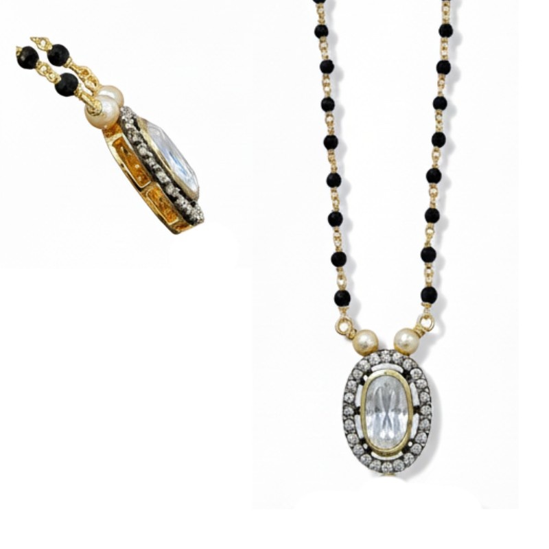 Elevate your jewelry collection with this exquisite 22K Gold Plated 925 Silver Mangalsutra. The center-piece is a captivating, pear-shaped moissanite stone surrounded by a halo of smaller, sparkling moissanite accents, offering brilliant sparkle that rivals traditional diamonds. The design is a seamless fusion of tradition and trend for the modern woman.