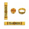 Accessorize the bridal party in style with this shimmering golden “Team Bride” sash, perfect for a bachelorette, hen party, or bridal shower celebration. Make a statement with this sophisticated “Team Bride” sash. Crafted from high-quality, durable satin-like fabric with a stunning golden finish and bold black lettering, it ensures comfort and longevity throughout the festivities.