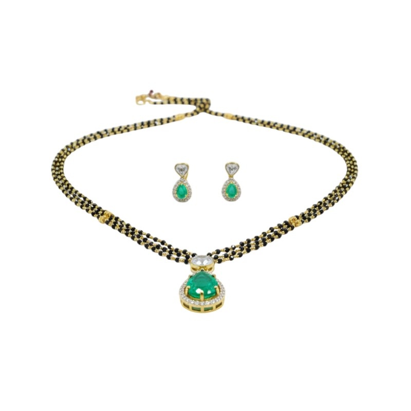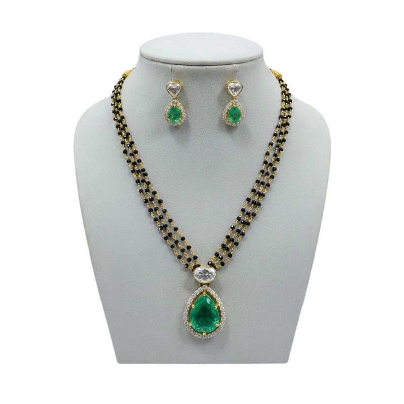 Elevate your style with this exquisite Emerald Green Moissanite Pendant and Earring Set. Designed for elegance, the large pear/teardrop-shaped emerald-green synthetic stone is surrounded by a halo of brilliant-cut clear moissanite stones, set in high-quality 925 sterling silver with a rich 22-carat gold plating. The necklace is a stylish three-layered chain of black crystal beads, offering a sophisticated contrast and comfortable fit. The accompanying stud earrings mirror the design, featuring both a small clear heart-shaped moissanite and a green teardrop stone, making this a complete look for special occasions or a glamorous everyday statement.