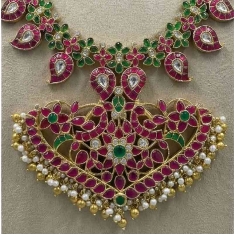 - Stones: High-quality Kundan gemstones (Kemp stones likely in red/green hues)