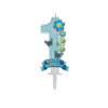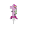Celebrate a baby’s first birthday with this charming number “1” cake topper candle. It features a decorative design with butterflies and flowers and a “Happy Birthday” banner.