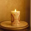Bring timeless grandeur to your décor with the Mughal Éclat Candle. Crafted in ivory with intricate red and gold floral motifs, this flameless LED candle radiates a warm golden glow, adding an aura of royalty and sophistication to any space. Inspired by traditional Mughal artistry, it is perfect as a statement piece for coffee tables, dining setups, or festive celebrations.