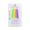 A set of vibrant, multi-colored candles for decorating a birthday cake. The pack contains candles in neon shades of orange, green, yellow, pink, and blue, each with a clear plastic base for easy and clean placement on a cake.