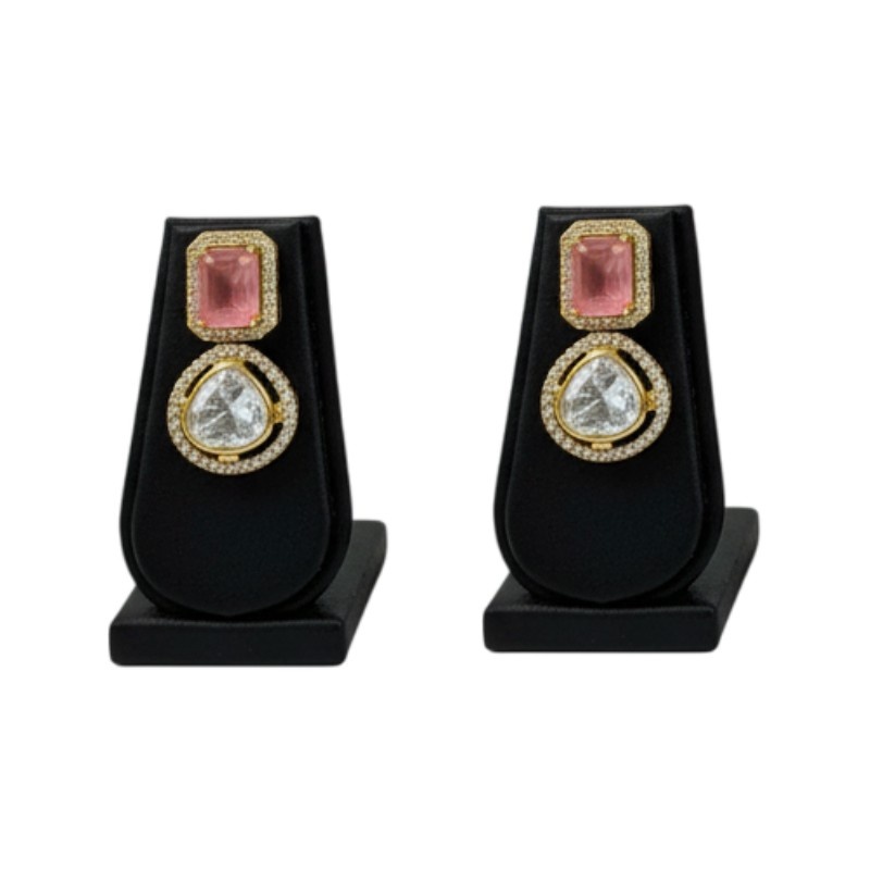 Elevate your style with this exquisite Pink and Clear Moissanite Pendant and Earring Set. Designed for elegance, the jewelry features a prominent cushion-cut pink central stone complemented by brilliant-cut clear moissanite stones. The set is crafted in high-quality 925 sterling silver with a rich 22-carat gold plating. The necklace is a stylish three-layered chain of black crystal beads, offering a sophisticated contrast and comfortable fit. The accompanying stud earrings mirror the pendant’s design, making this a complete look for special occasions or a glamorous everyday statement.