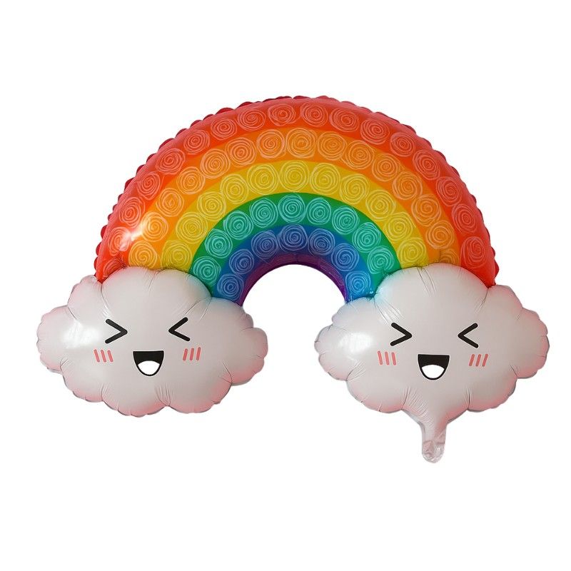 Elevate any celebration with this adorable and large-sized rainbow cloud foil balloon. Designed with vivid red, orange, yellow, green, blue, and purple stripes forming a classic arch, it features cheerful, smiling white clouds as its base. Crafted from high-quality, lightweight aluminum mylar material, this balloon is durable and ensures long-lasting enjoyment. It includes a self-sealing valve for easy inflation via a hand pump or helium tank and can be deflated using a straw for repeated use. The balloon is a perfect photo prop and backdrop addition, adding a touch of magic and a joyful atmosphere to kids’ birthdays, unicorn-themed parties, or baby showers.