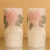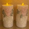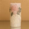 Illuminate your space with timeless elegance. This set of two flameless LED pillar candles is adorned with delicate blush rose embroidery, intricate ivory lace, and a crown of lustrous faux pearls. The warm flickering glow adds a romantic, royal charm — perfect for coffee tables, consoles, or intimate dinner settings. A safe, mess-free alternative to real candles, crafted for those who cherish beauty in every detail.