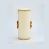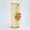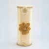 An elegant ivory pillar candle adorned with intricate crochet lace, a wooden accent flower, and a rustic burlap bloom. The handcrafted details and warm earthy tones make it a perfect centerpiece for luxury table setups, weddings, or festive decor.