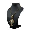Embrace vintage charm with this exquisite Victorian Style Carved Emerald and Moissanite Pendant Set. Designed with classic elegance, the large ornate pendant features intricately carved emerald-green synthetic stones and brilliant-cut clear moissanite stones set in high-quality 925 sterling silver with a rich 22-carat gold plating. The necklace is a stylish two-layered chain of black crystal beads, offering a sophisticated contrast and comfortable fit. This piece is perfect for special occasions, formal wear, or as a timeless gift.