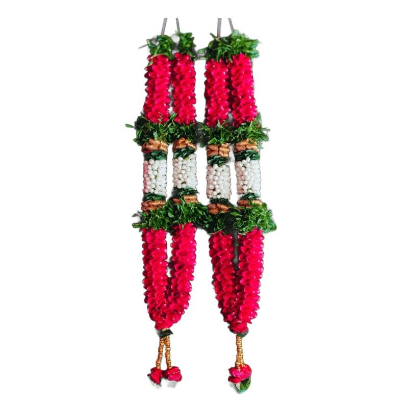 This beautifully handcrafted pink and white garland (jaimala) is designed to add grace and tradition to your special moments. Made with fresh/artificial flowers, it features a vibrant combination of pink petals, white buds, and green leaves, giving it a rich and festive look.