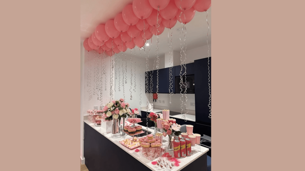 Balloon bouquets are perfect for filling empty spaces while keeping the decor elegant and balanced. Place them near seating areas, gift tables, or the cake table to create a cohesive look. You can mix metallic balloons with pastel shades or add transparent balloons filled with confetti for a soft sparkle. These little clusters bring harmony to the setup and make the space feel complete.